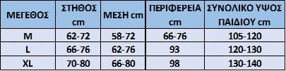 Μεγέθη M-XL ή 105-140 ύψος