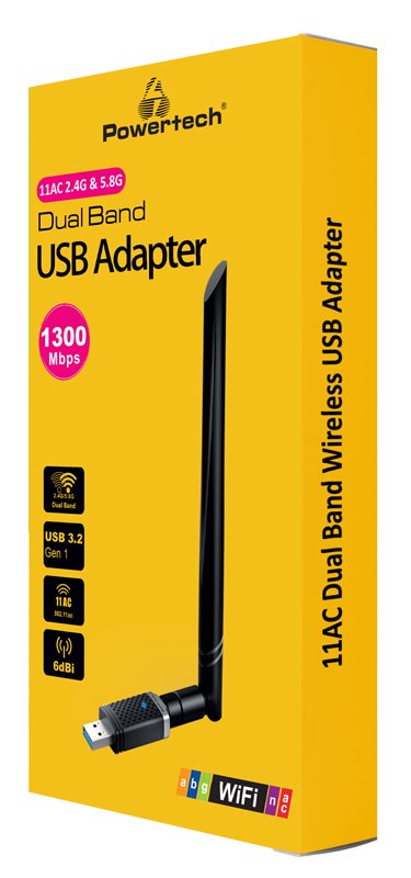 POWERTECH ασύρματος USB αντάπτορας δικτύου PT-1132, 1300Mbps, 2.4/5GHz