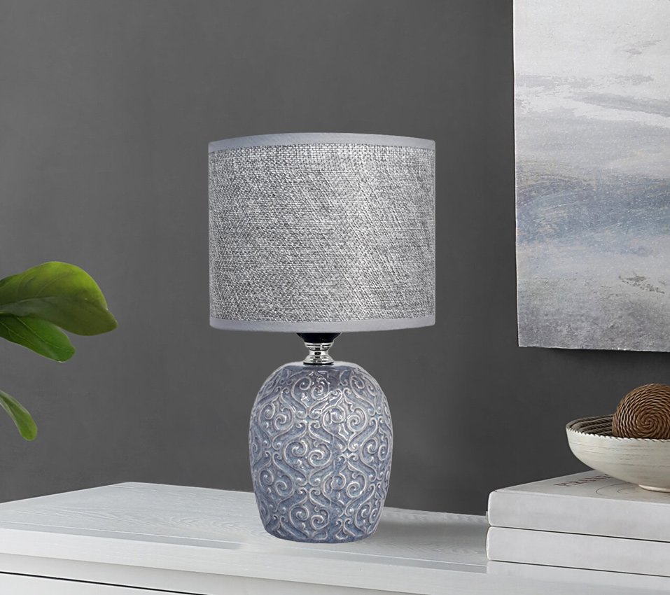 POWERTECH επιτραπέζιο φωτιστικό HLL-0138, E27, κεραμική βάση, μπλε/γκρι