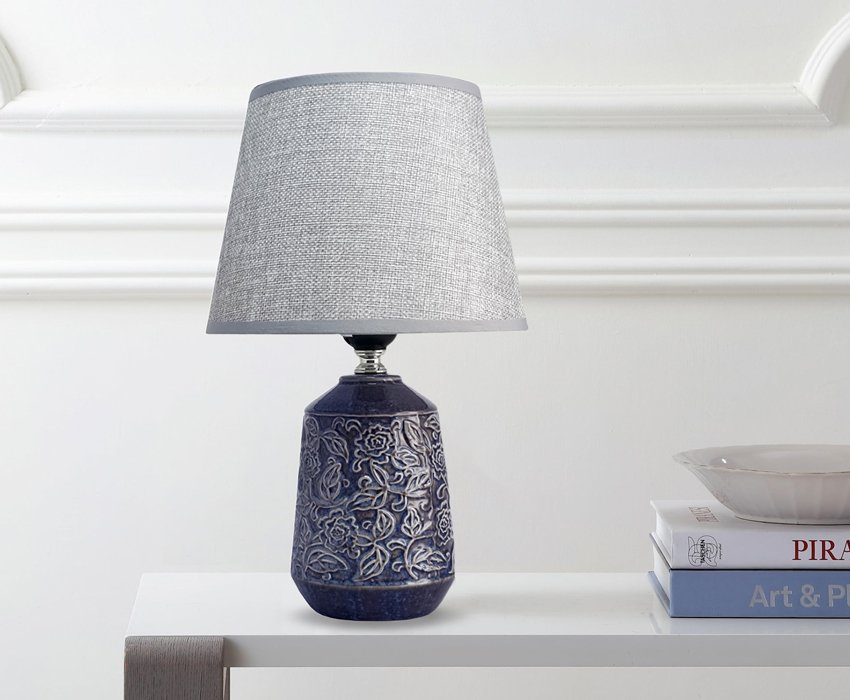 POWERTECH επιτραπέζιο φωτιστικό HLL-0140, E27, κεραμική βάση, μπλε/γκρι
