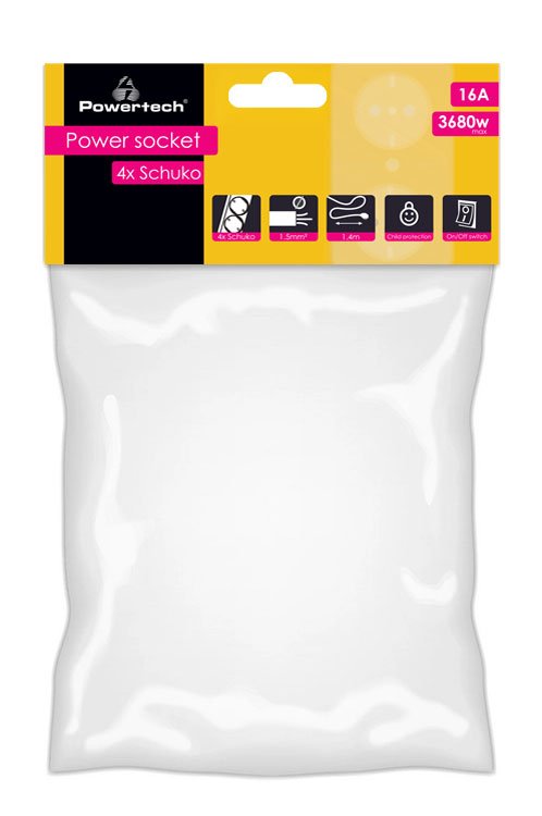 POWERTECH πολύπριζο ασφαλείας PT-1056, 4x schuko, 16A, 1.4m, λευκό