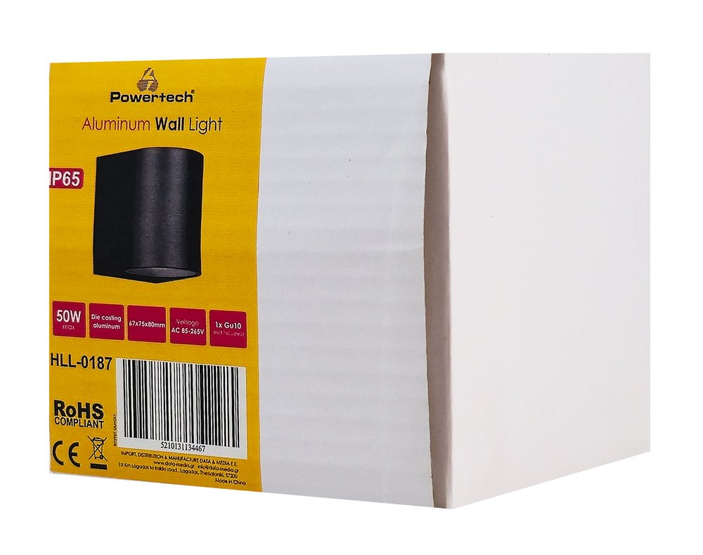 POWERTECH φωτιστικό τοίχου HLL-0187 για GU10 λάμπα, μεταλλικό, IP65, μαύρο