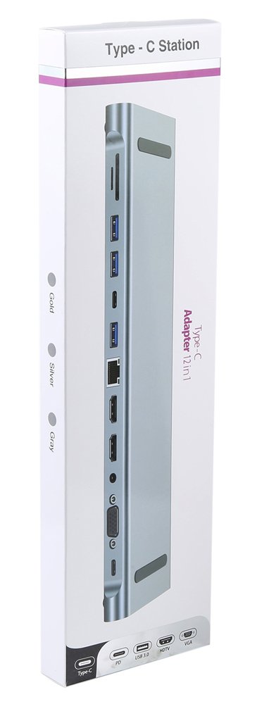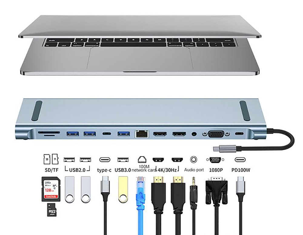 POWERTECH docking station BYL-2003U2, 12 θυρών, βάση laptop, USB-C, γκρι