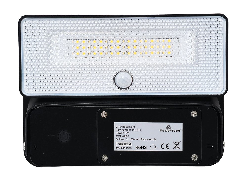 POWERTECH LED ηλιακό φωτιστικό PT-1518 με αισθητήρα κίνησης, 12W, 3600mAh, μαύρο