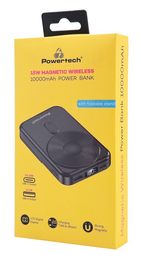 POWERTECH power bank με οθόνη PT-1416, 10000mah, magnetic wireless, 22.5W, μαύρο