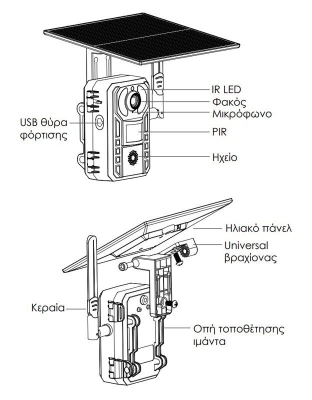 POWERTECH smart ηλιακή κάμερα κυνηγού PT-1178, 4MP, 4G, PIR, SD, IP66