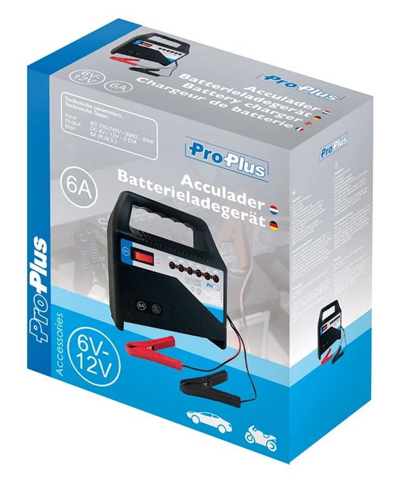 Φορτιστής μπαταρίας αυτοκινήτου της ProPlus, κατάλληλος για 6V και 12V μπαταρίες οξέως, με ένταση 6A.