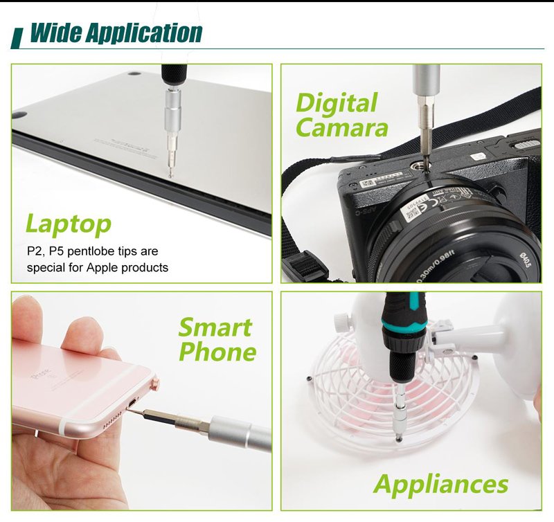-Hex key bits: 3mm, 4mm, 5mm, 6mm