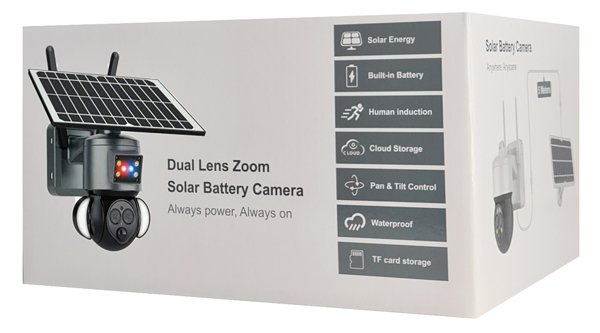 Ασύρματη ηλιακή κάμερα της Sectec εξωτερικού χώρου με διακριτική και μοντέρνα εμφάνιση. Διαθέτει αισθητήρα ανάλυσης 3MP και μπορεί να μεταφέρει εικόνα ανάλυσης 2304x1296p.