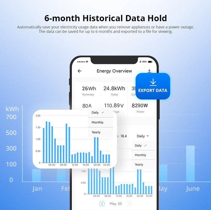 Η εφαρμογή eWeLink παρέχει ιστορικό χρήσης ηλεκτρικής ενέργειας 6 μηνών, το οποίο μπορείτε να εξάγετε στον αποθηκευτικό χώρο του τηλεφώνου σας.