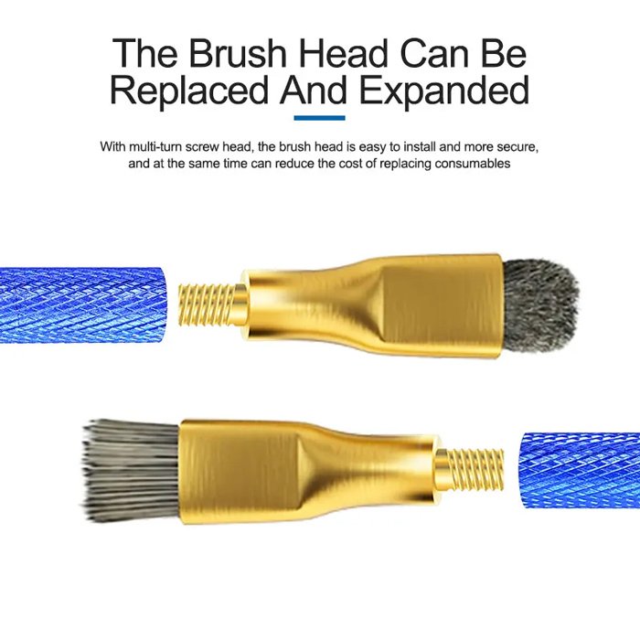 Διαθέτει δυο αφαιρούμενες βούρτσες, μια με τρίχες και μια συρμάτινη, κατάλληλες για διαφορετική εφαρμογή.