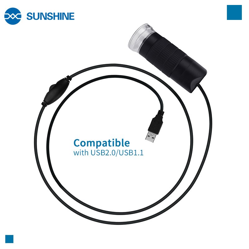 Ψηφιακό μικροσκόπιο της Sunshine, ιδανικό για επιθεώρηση ηλεκτρονικών εξαρτημάτων σε εργασίες επισκευής. Έχει εμβέλεια μεγέθυνσης 50x έως 1000x και υποστηρίζει ψηφιακό zoom 5x. Διαθέτει πλήκτρο που σας επιτρέπει ανά πάσα στιγμή να τραβήξετε φωτογραφίες και βίντεο. Επιπλέον, εξοπλίζεται με LED φωτισμό για καλύτερη ορατότητα κατά την εργασία σε πιο σκοτεινό περιβάλλον. Η σύνδεση του με laptop ή desktop γίνεται μέσω καλωδίου USB.