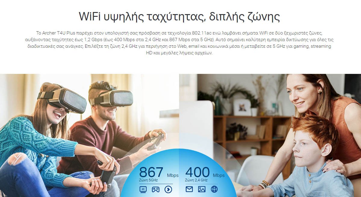 ζώνες 2,4GHz και 5GHz για ευέλικτη συνδεσιμότητα