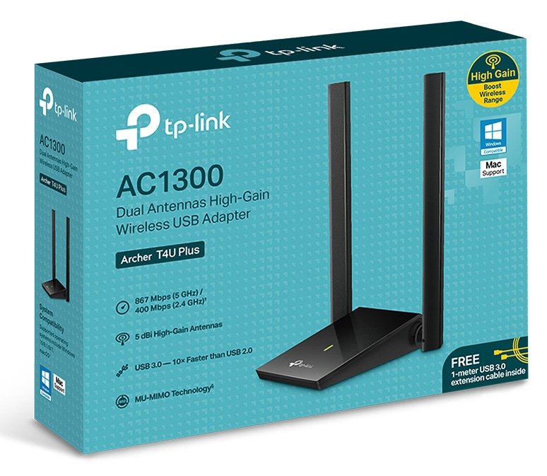 AC1300 Dual Antennas High-Gain Wireless USB Adapter Archer T4U Plus