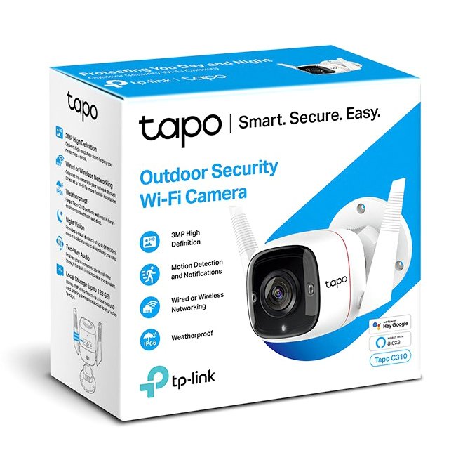 Η Wi-Fi εξωτερική κάμερα ασφαλείας TAPO-C310 της TP-LINK, καταγράφει κάθε κίνηση σε καθαρή, HD ανάλυση, ακόμη και κατά την διάρκεια της νύχτας. Υποστηρίζει την τεχνολογία Motion Detection και Notifications, με την οποία ανιχνεύει κάθε κίνηση και ειδοποιεί με μήνυμα. Εξοπλίζεται με ηχείο και μικρόφωνο, επιτρέποντας την αμφίδρομη επικοινωνία με τα άτομα που βρίσκονται στον χώρο και έχει λειτουργία εκφοβισμού ανεπιθύμητων επισκεπτών με φως και ήχο. Έχει τη δυνατότητα αποθήκευσης αρχείων έως 128GB, σε κάρτα SD (δεν συμπεριλαμβάνεται), που ισοδυναμεί με 384 ώρες (16 μέρες) καταγραφής. Ρυθμίζεται εύκολα και ελέγχεται μέσω της δωρεάν εφαρμογής Tapo.