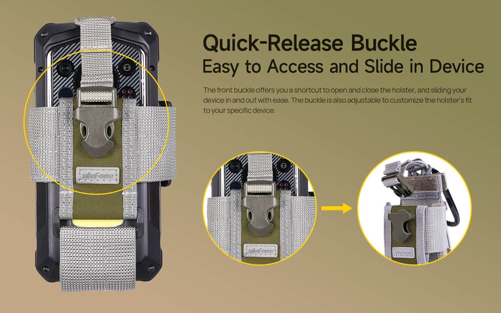 Θήκη ζώνης της Ulefone συμβατή με τα smartphone της σειράς Armor. Συνοδεύεται από κρίκο που επιτρέπει το κρέμασμα της από τσάντα.
