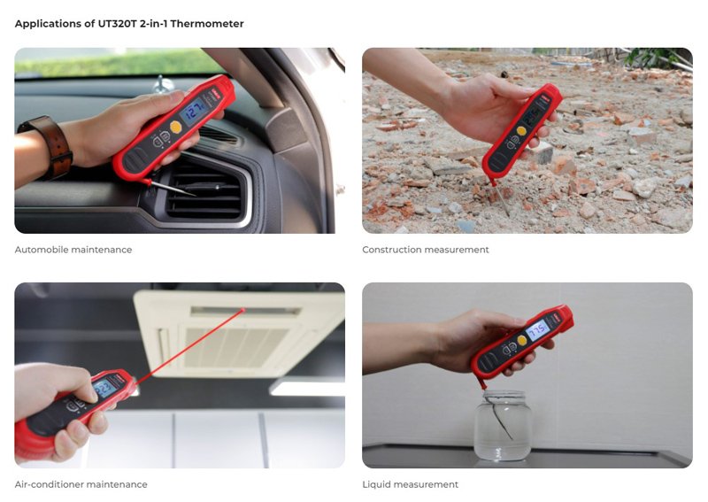 Το UT320T είναι ένα θερμόμετρο με αισθητήρα υπερύθρων και πτυσσόμενο αισθητήρα.