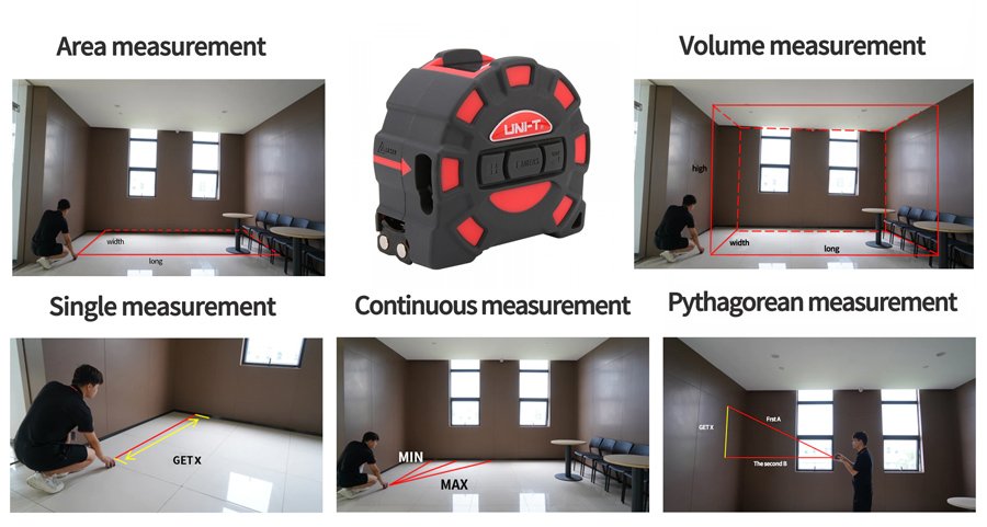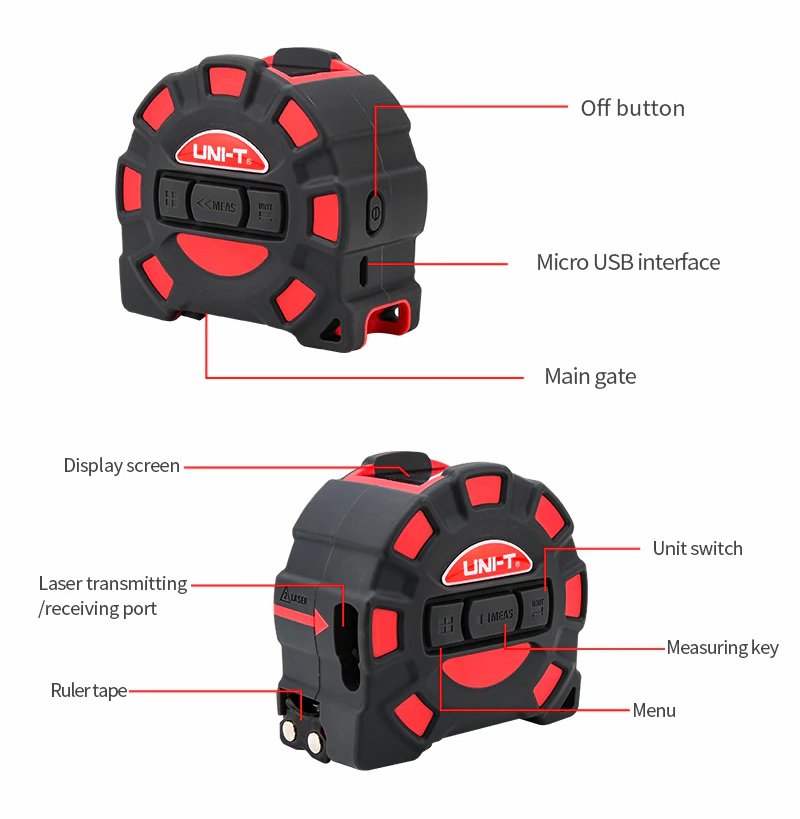 Ψηφιακό μέτρο από την UNI-T με δυνατότητα laser μέτρησης έως 60 μέτρα, και μέτρησης με μετροταινία έως 5 μέτρα. Είναι ιδανικό για κατασκευάστηκες εργασίες, εργασίες ανακαίνισης και άλλες εργασίες που απαιτούν ακριβής μέτρηση απόστασης.