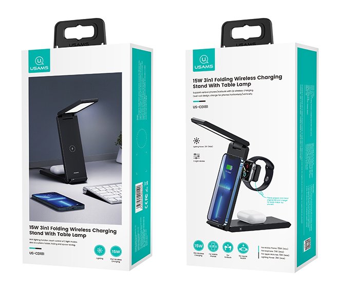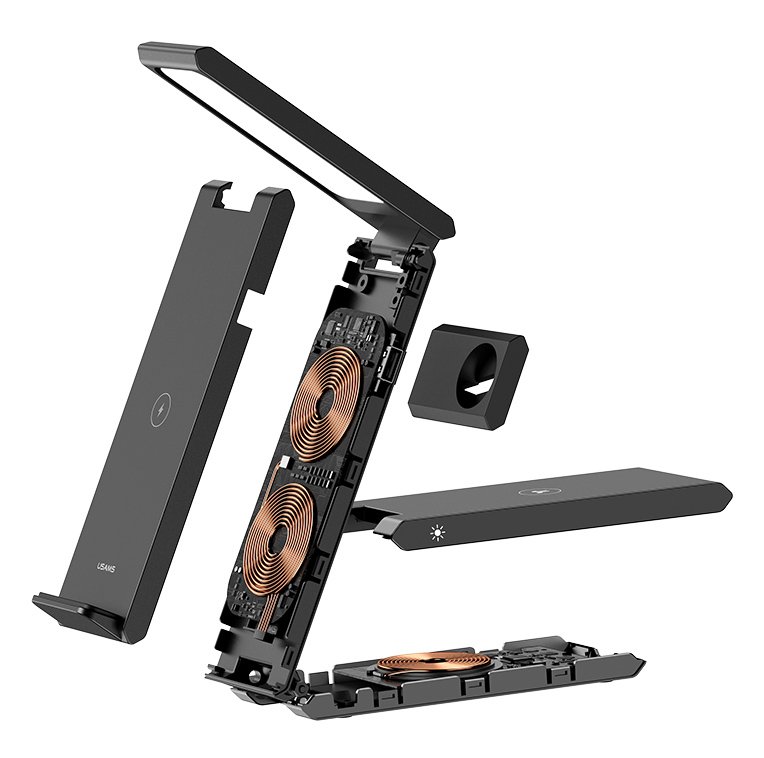 USAMS ασύρματος φορτιστής US-CD181 με φωτιστικό, 3 σε 1, 15W, μαύρος