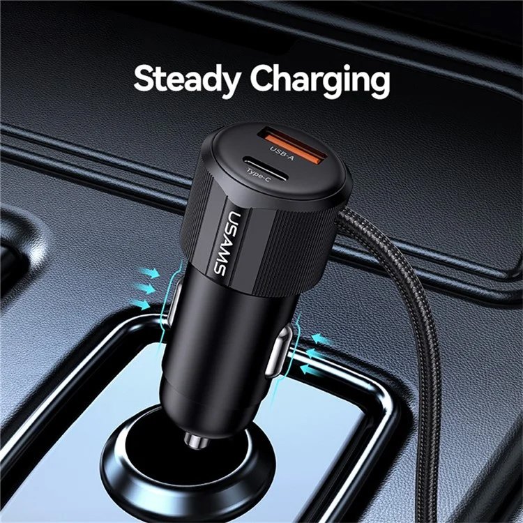 Υψηλής απόδοσης φορτιστής αυτοκινήτου της Usams, κατασκευασμένος από ανθεκτικό υλικό και συμβατός με συσκευές που φορτίζουν μέσω θύρας USB.