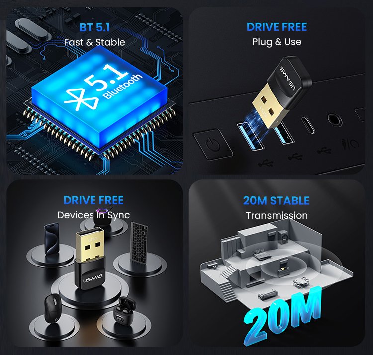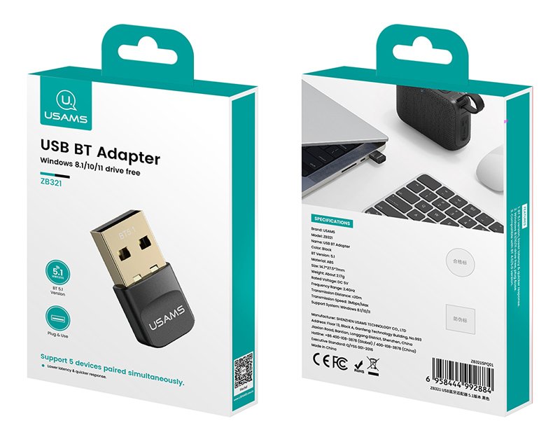 Ο USB αντάπτορας Bluetooth της Usams σας επιτρέπει να συνδέσετε ασύρματα, μέσω θύρας USB, έναν non-Bluetooth υπολογιστή με συσκευές Bluetooth όπως ασύρματα ακουστικά ή ποντίκια.