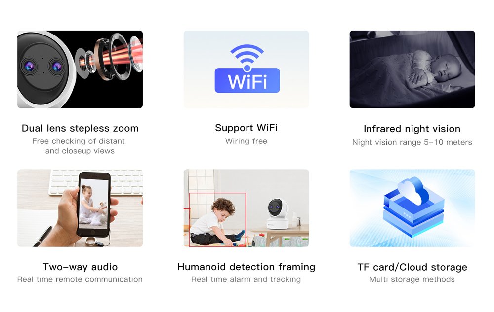 -Storage: Supports TF card (max 256GB), Cloud Storage, NVR, NAS