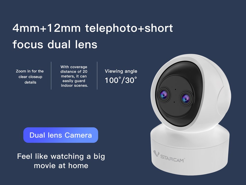 Η smart κάμερα CS49D της Vstarcam καταγράφει κάθε κίνηση σε καθαρή, υψηλής ευκρίνειας ανάλυση. Ενσωματώνει 2 φακούς και υποστηρίζει υβριδικό zoom για την καλύτερη κάλυψη του χώρου.