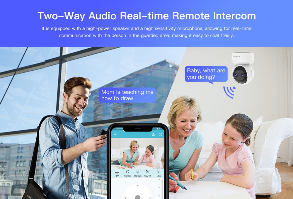 Υποστηρίζει PTZ λειτουργία που σας επιτρέπει την οριζόντια και κάθετη μετακίνηση της κάμερας μέσω της εφαρμογής, για την εύκολη προσαρμογή της στην ιδανική γωνία θέασης.