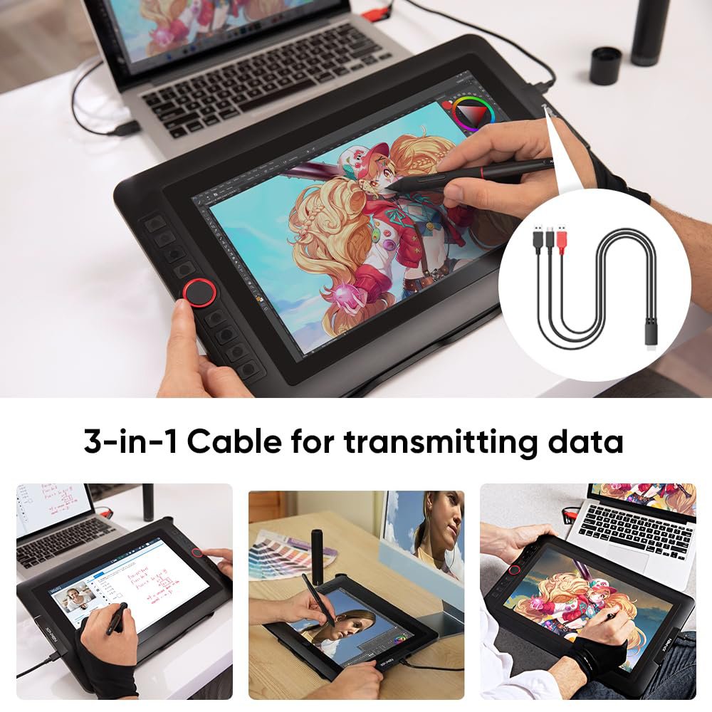 Καλώδιο 3 σε 1 από HDMI σε USB-C και 2x USB, κατάλληλο για την σύνδεση ταμπλετών σχεδίασης της XP-PEN με desktop ή laptop.